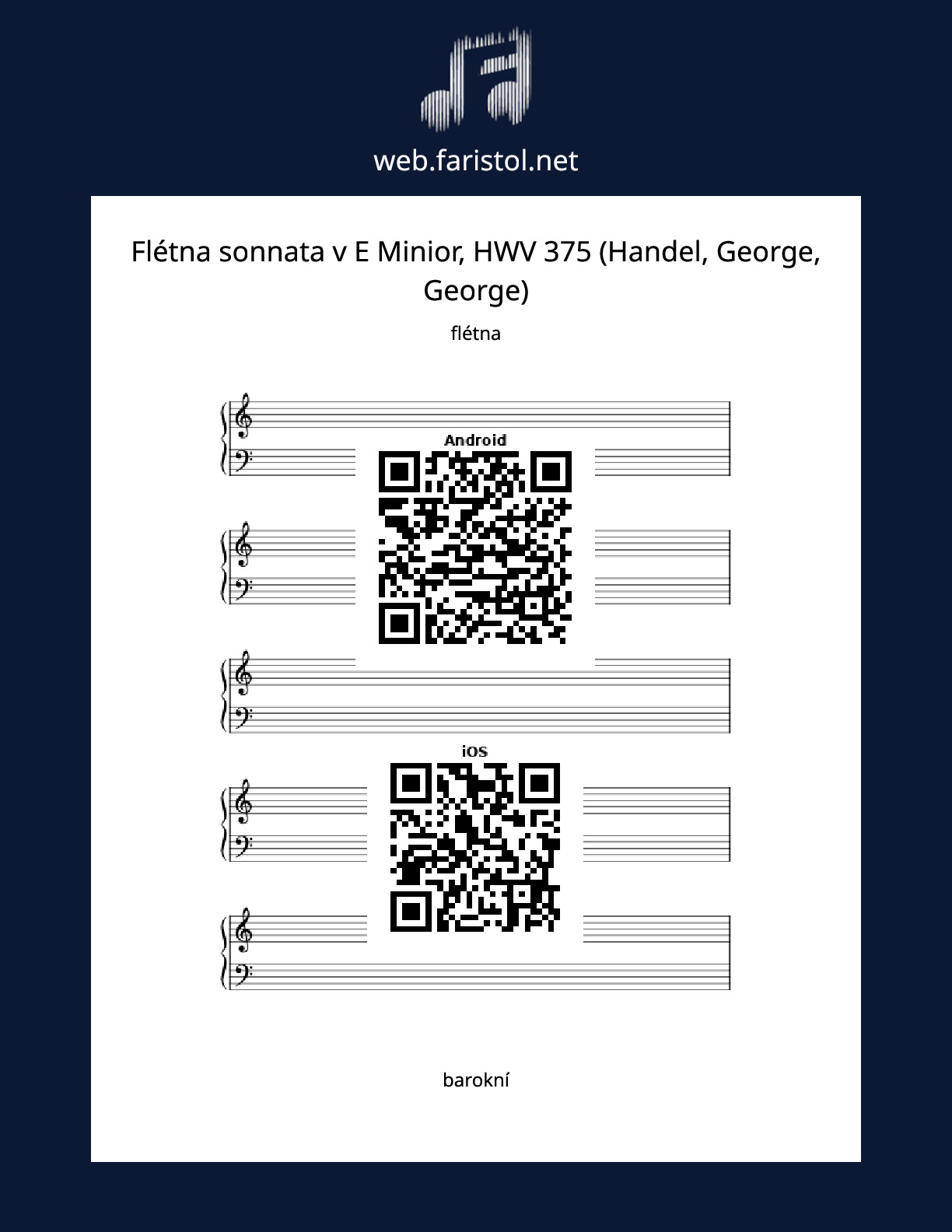 - Sonáta pro flétnu e moll, HWV 375 (Handel, George Frideric)Věty/Sekce 4 větyPrvní publikace 1879 - Lipsko: Breitkopf & HärtelStyle Kategorie Sonáty; Pro flétnu, průběžná; Partitury s flétnou; [2 další...]